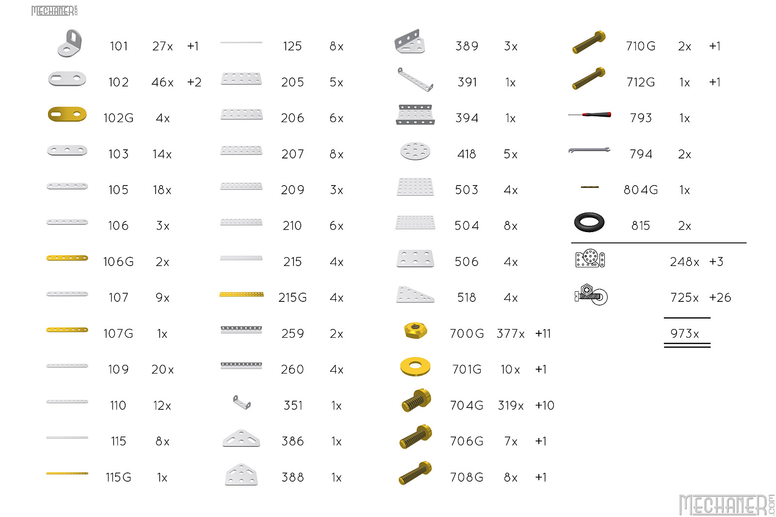 Model je dlouhý 280 mm (11“) s rozpětím 360 mm (14“). Celý letoun se skládá z 246 plechových dílu a z 725 kusů spojovacího materiálu. Vrtule a kola jsou otočná.